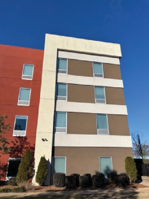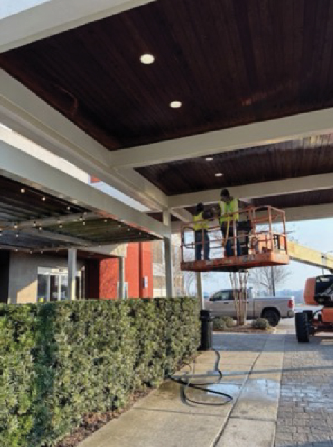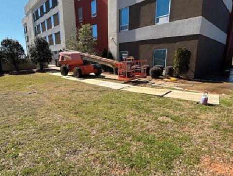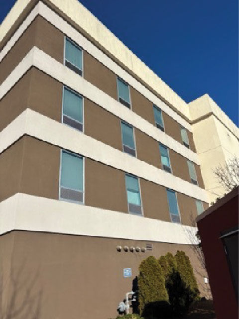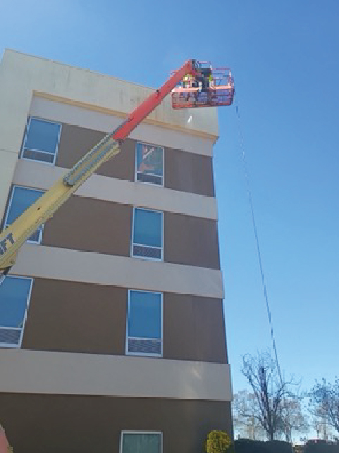 This H2 Suite By Hilton was being remodeled and the contractor thought it needed a full repaint on the exterior. Before they repainted, they wanted to pressure wash the building to help the paint adhere better. Since this is a 5-story building, we brought in our bucket trucks to reach all levels. The power washing was so successful that they determined afterwards that no painting was needed.